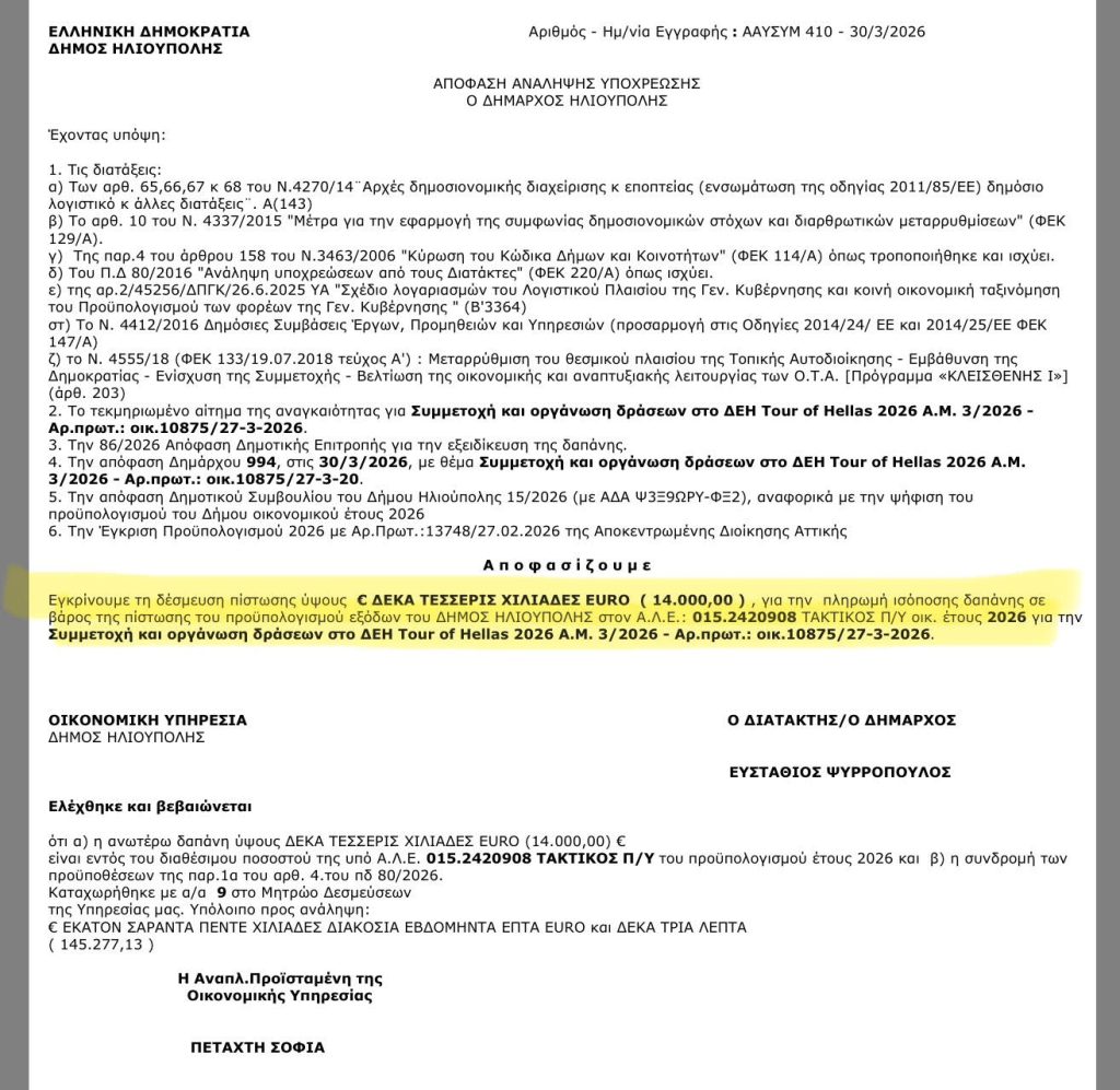 14.000 ευρώ για το ΔΕΗ tour… Όλα είναι θέμα προτεραιοτήτων!