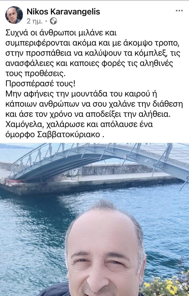 *Και για να κλείσουμε θεσμικά η Έλενα Καπίρη, αντιδήμαρχος Facebook και instagram. Έχει τόσες αναρτήσεις καθημερινά που διαλέγουμε μια στην τύχη, με ουσία, βαθύ περιεχόμενο και έντονο συμβολισμό.