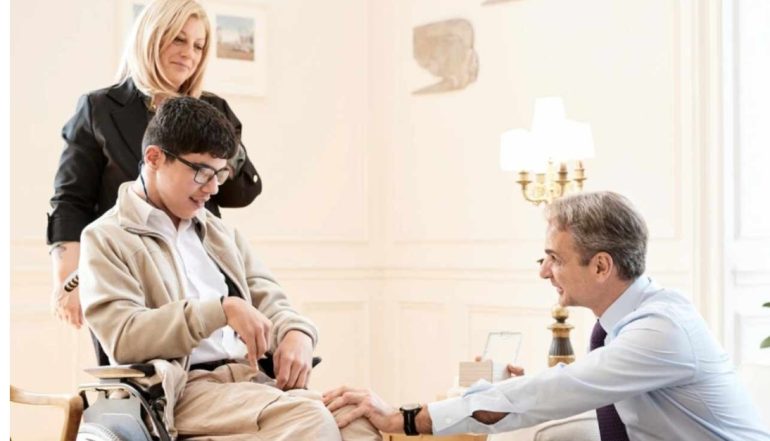 Στο Μέγαρο Μαξίμου βρέθηκαν το πρωί της Πέμπτης 2 Απριλίου ο μικρός Παναγιώτης μαθητής του Ειδικού Σχολείου Ηλιούπολης συνοδευόμενος από την μητέρα του Μάγδα Μπακαλίδη. Ο λόγος της παρουσίας τους εκεί...