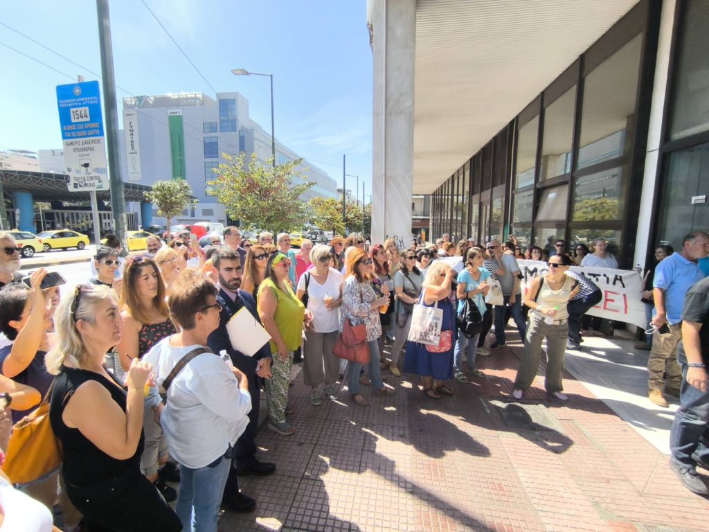 Έξω από το κτήριο είχε συγκεντρωθεί μεγάλος αριθμός συναδέλφων της Προέδρου από τον Δήμο Ηλιούπολης, οι οποίοι ανέμεναν την ολοκλήρωση της διαδικασίας. Άλλωστε το Σωματείο είχε κηρύξει στάση εργασίας κάτι που δεν αντιμετωπίστηκε θετικά από την Δημοτική Αρχή και  για άλλη μια φορά με τηλεφωνήματα προσπαθούσε να ελέγξει δυνάμεις και διαθέσεις των υπαλλήλων…