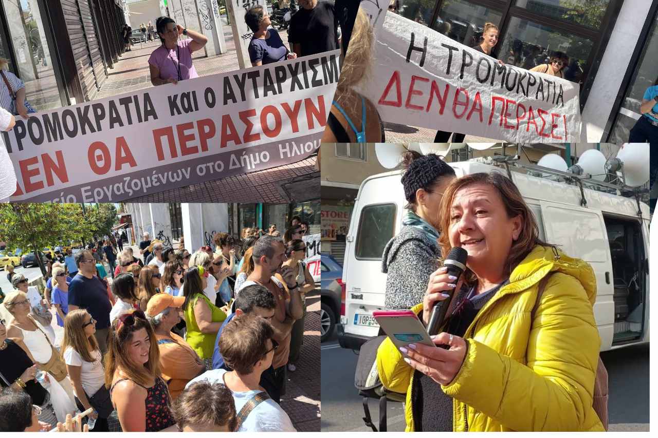 Έξω από το κτήριο είχε συγκεντρωθεί μεγάλος αριθμός συναδέλφων της Προέδρου από τον Δήμο Ηλιούπολης, οι οποίοι ανέμεναν την ολοκλήρωση της διαδικασίας. Άλλωστε το Σωματείο είχε κηρύξει στάση εργασίας κάτι που δεν αντιμετωπίστηκε θετικά από την Δημοτική Αρχή και  για άλλη μια φορά με τηλεφωνήματα προσπαθούσε να ελέγξει δυνάμεις και διαθέσεις των υπαλλήλων…