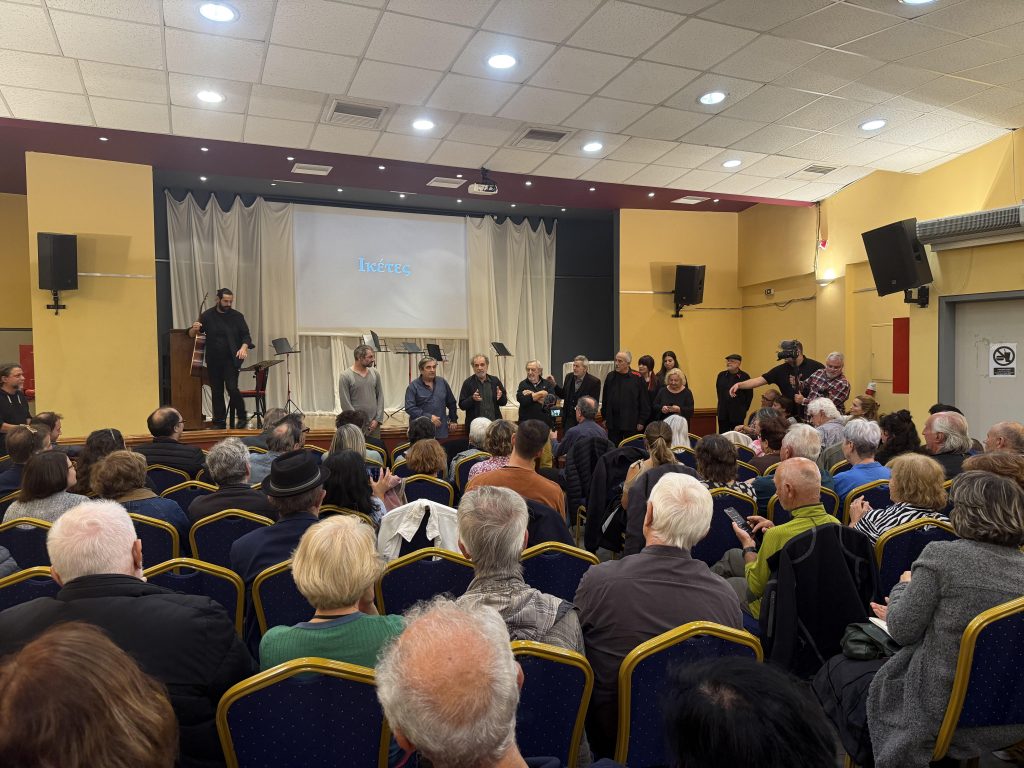 Με μεγάλη επιτυχία παρουσιάστηκε το Σάββατο 22 Νοεμβρίου το έργο Ικέτες του συμπολίτη μας Νίκου Καραγέωργου. Όσοι γέμισαν ασφυκτικά το θέατρο του Μουσείου Εθνικής Αντίστασης είχαν την χαρά να μετέχουν σε μια μαγική στιγμή, σε ένα παιχνίδι λέξεων συναισθημάτων, εικόνων και νοημάτων. Η σκηνοθεσία του Δημήτρη Σκλάβου δημιούργησε μια επιβλητική εικόνα, τα χαρακτικά του Στέλιου Τσιμογιάννη έδωσαν εικόνα στα λόγια, οι λιτές ερμηνείες στις απαγγελίες των ηθοποιών και η μουσική και το τραγούδια των Βασίλη Ανδρικόπουλου, Σπύρου Πρατίλα αλλά και η φωνή του Φίλιππου Πασσαλίδη έδωσαν ρυθμό στην ποίηση και το πολιτικά νοήματα του Νίκου Καραγεώργου.